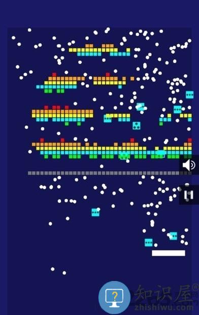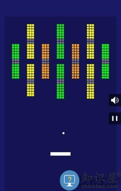 4.游戏中玩家需要控制一个白板来接掉下来的白色小球,黑色的砖块不能打,只能打掉彩色,打完通关。