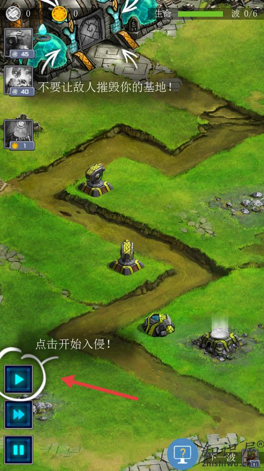 1、玩家需在路边的空地建造防御塔抵御敌人入侵。