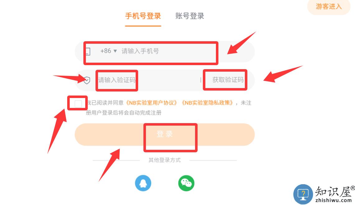 3、点击红色框框里打√然后输入手机号码获取验证码并输入验证码然后登录。