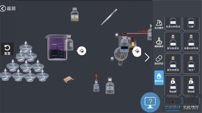 提供了烧杯、试管、滴管等实验器材,玩家可以按照实验步骤进行操作;