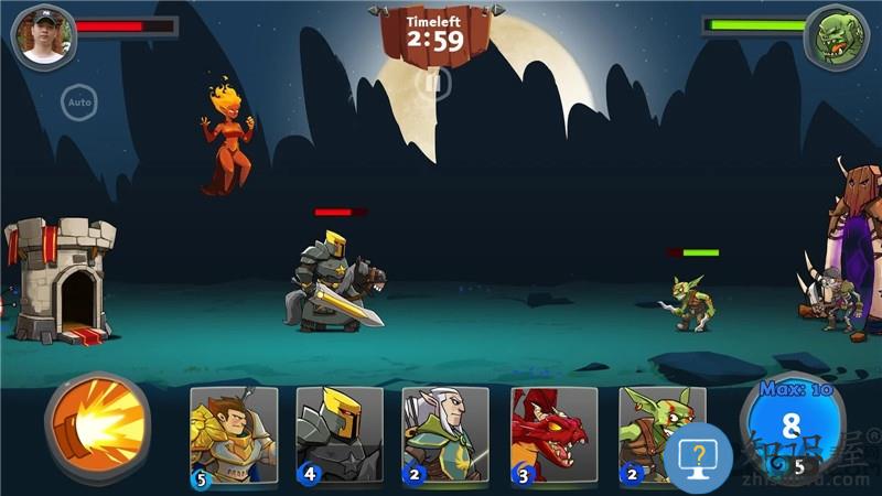 5、玩家只需要点击卡片,不断召唤士兵就可以参与战斗了!