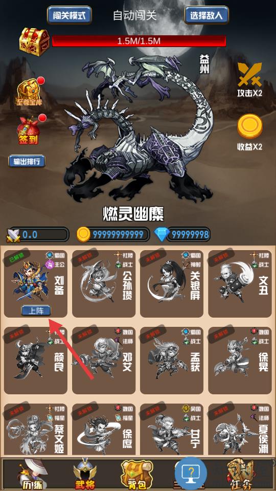1、选择三国武将自由搭配职业阵容进行挂机战斗。