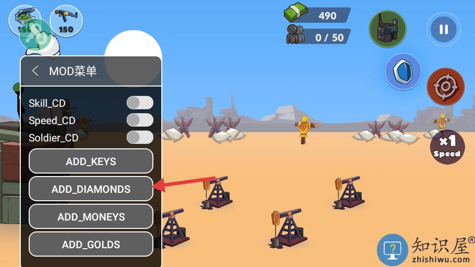 2、可以点击MOD菜单快速提升己方实力。