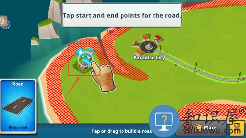 2、根据提示点击地图设定道路起点,拖动手指确定走向。