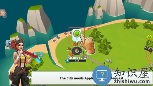 2、根据城市要求点击苹果图标提交资源,完成0/35的收集任务。