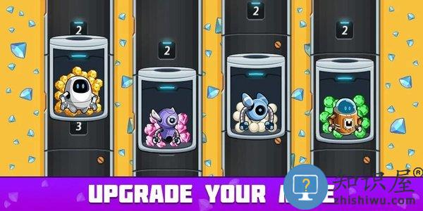 3、继续点击机器人进行挖矿,并按照箭头提示升级已有设备提升效率。
