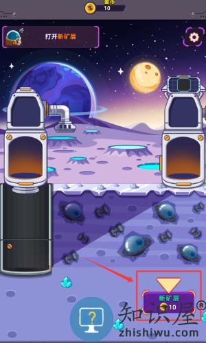 3、点击右下角红框标注的新矿层按钮,花费10金币开启采矿区域。
