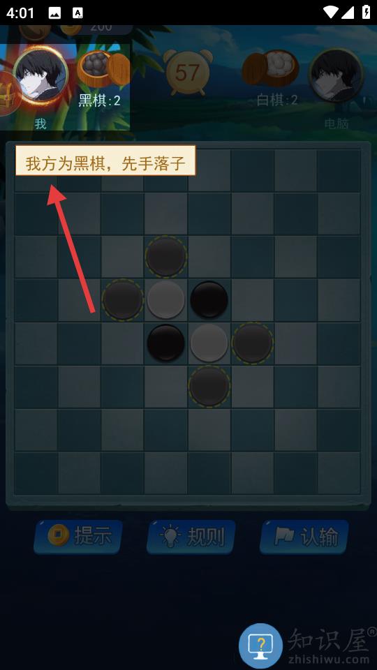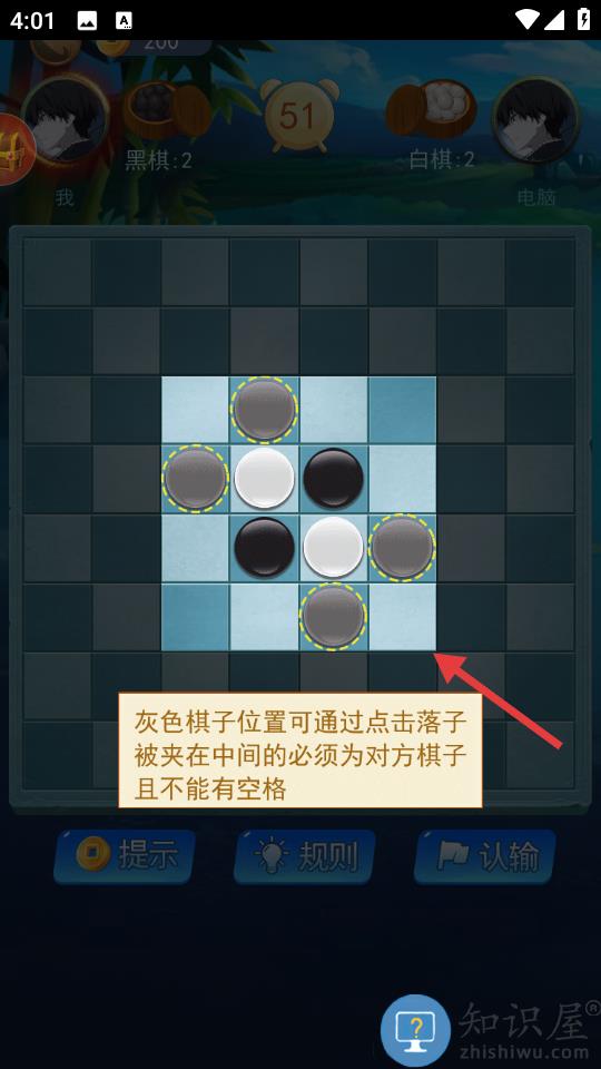 1、游戏采用8x8方格棋盘,双方轮流落子翻转对方棋子。