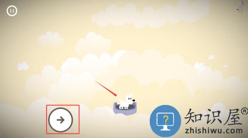 3、点击左下角红框移动键,控制坐船的小狗探索场景。