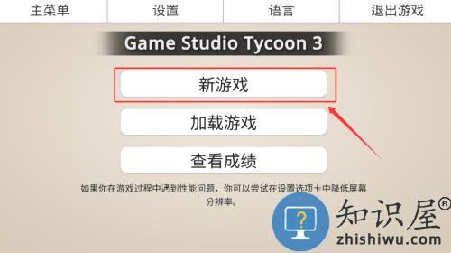 1、在主菜单点击红色箭头标注的新游戏按钮创建工作室。