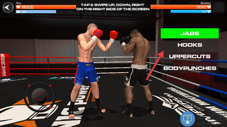 1、通过虚拟摇杆操控角色移动,拖动屏幕施展直拳勾拳等基础攻击动作。