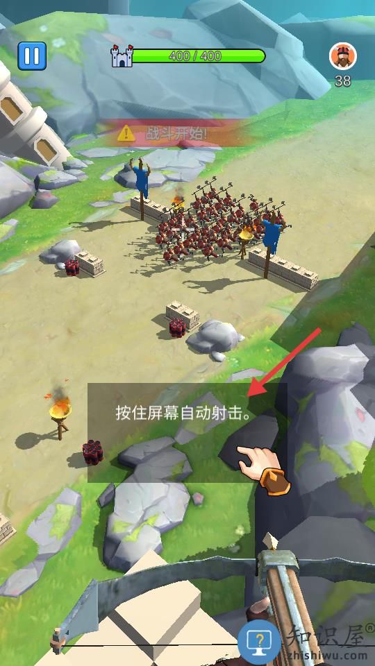 1、操控弓箭手守卫城堡大门抵御敌军进攻保护城堡安全。