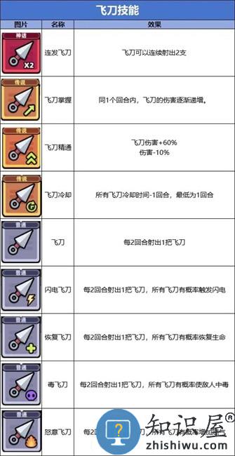 推图核心技能: 连发飞刀、飞刀冷却、飞刀掌握