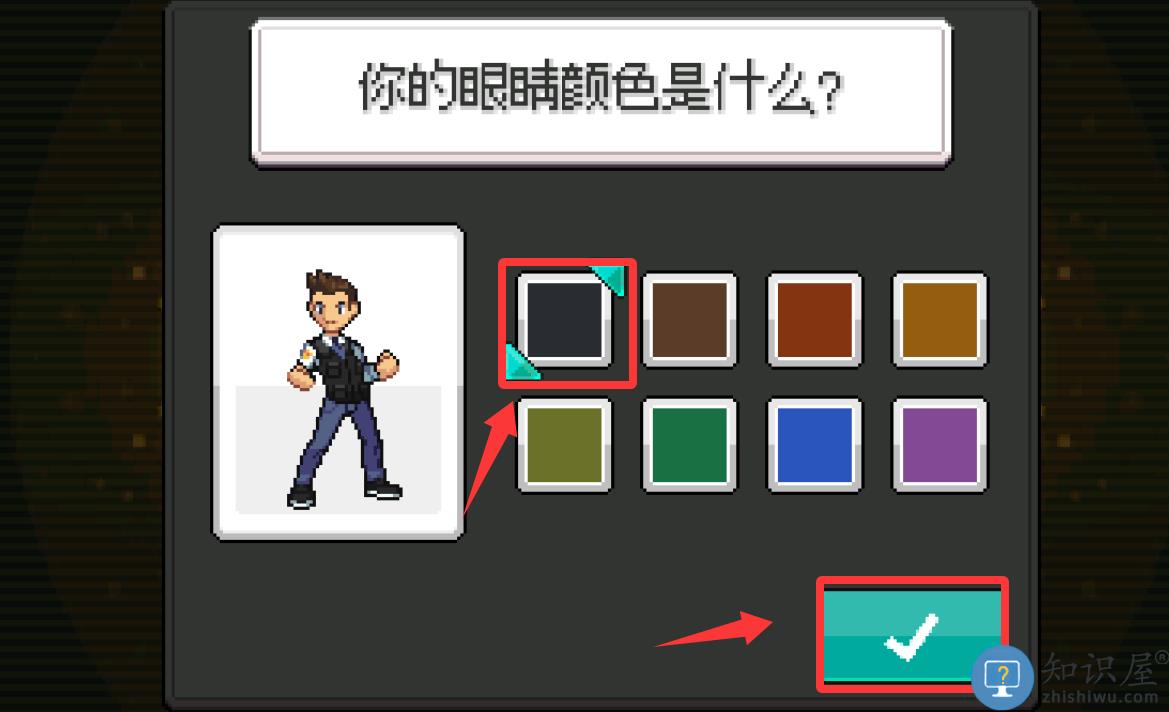 1、进入游戏选择角色眼睛的颜色然后点击打√。