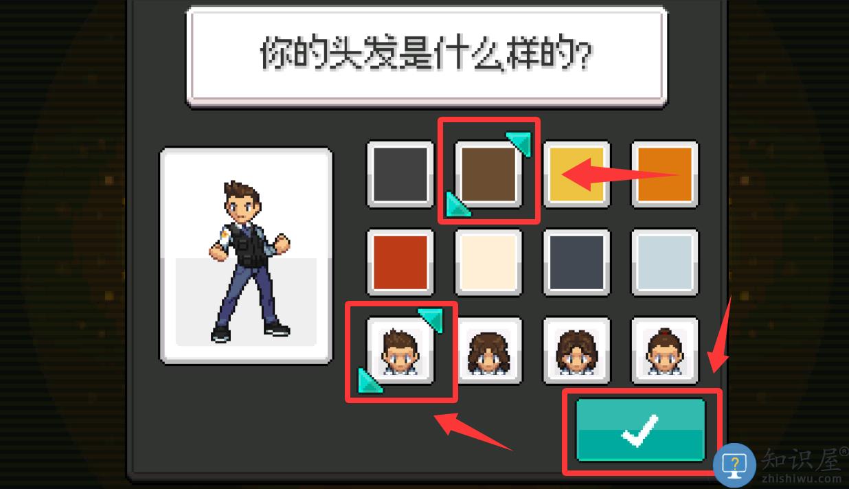 2、然后选择头发颜色和发型点击打√。