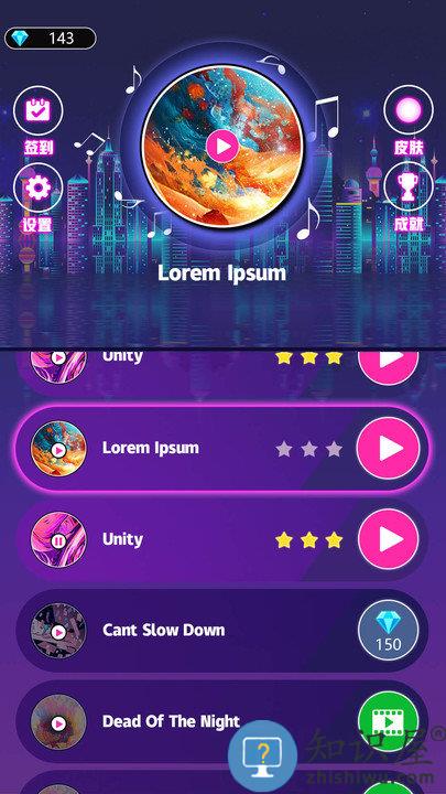 2、而且在这里关卡种类有很多,每一关的歌曲类型都不一样,你可以跟随节奏进行跳跃