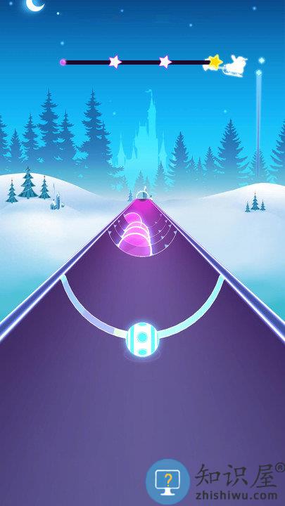 1、通过滑动屏幕控制小球跟随音乐节奏穿越障碍物。