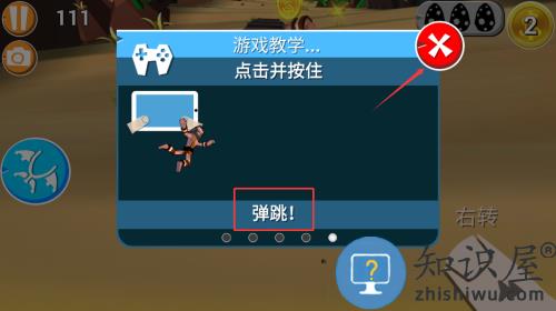 2、按照箭头指引按住弹跳键,学习木偶人跳跃的操作技巧。