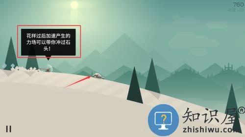 1、利用花样动作后的加速力场,直接冲过途中的石块障碍。
