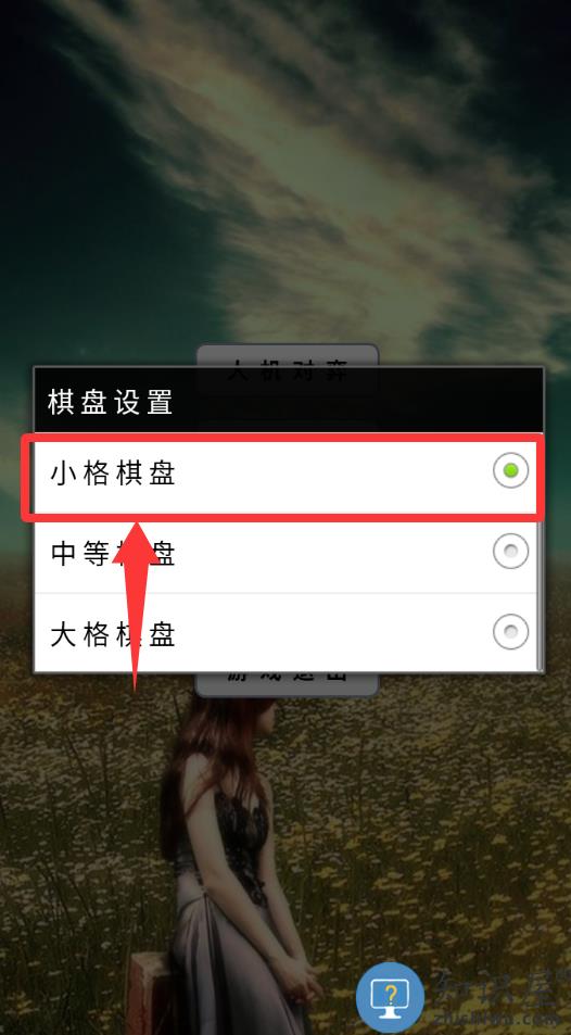 1、进入游戏界面点击棋盘设置点击第一个小格棋盘。