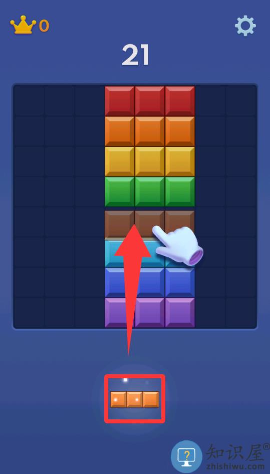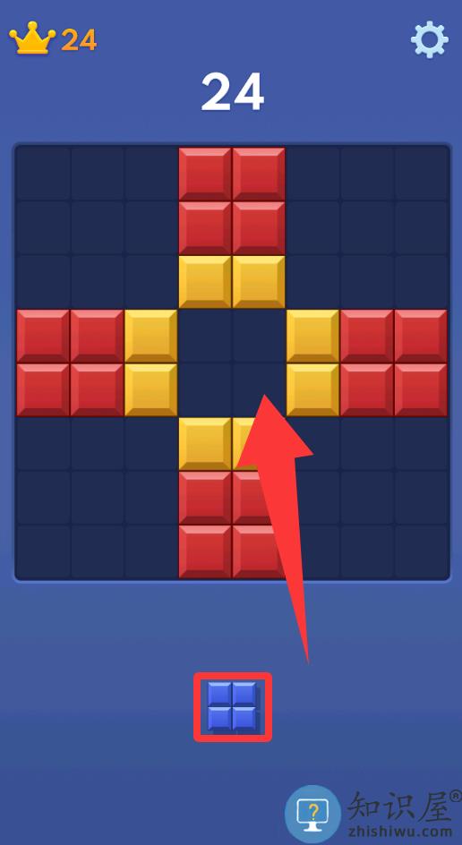4、再把这个正方形的积木移动到中间哪里就可以消灭了。