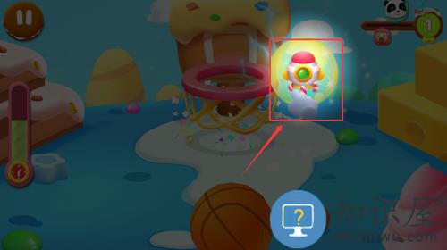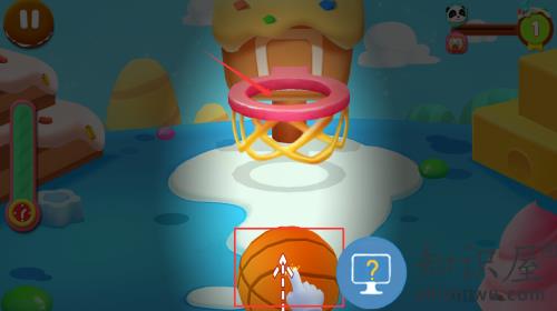 1、瞄准红框标注的篮球框,将橙色篮球投入篮筐得分。