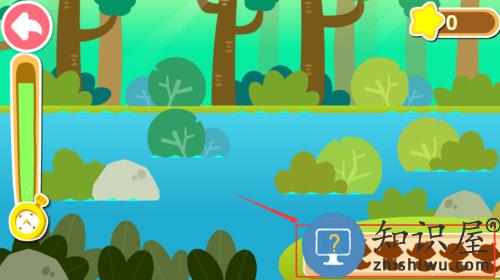 1、在森林场景中,根据红框和箭头提示,点击底部一排小动物剪影中的黄色鸭子进行互动。