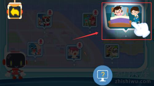 3、在卡片选择界面,根据红框和箭头提示,选择带有床铺图案的卡片进行互动。