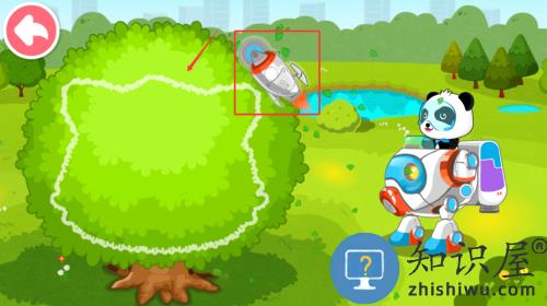 1、点击红框标注的银色火箭,让熊猫割出形状。
