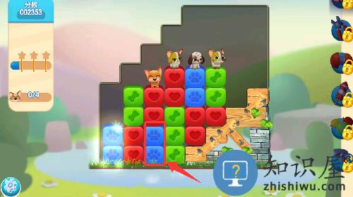 3、匹配两个或更多同色砖块来移除障碍,从邪恶的宠物大盗手中解救宠物!