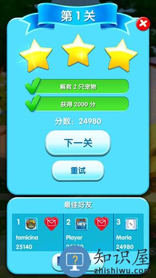 6、主要目的是解救2只宠物,但分数越高过关后的星级评价也就越高。