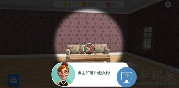 3、点击红色框框里的沙发并进行升级。