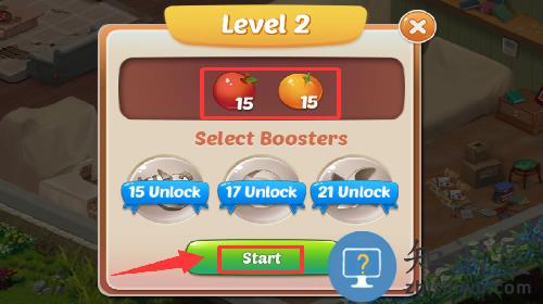 3、这关的任务是消灭15个苹果和橙就可以通关了。