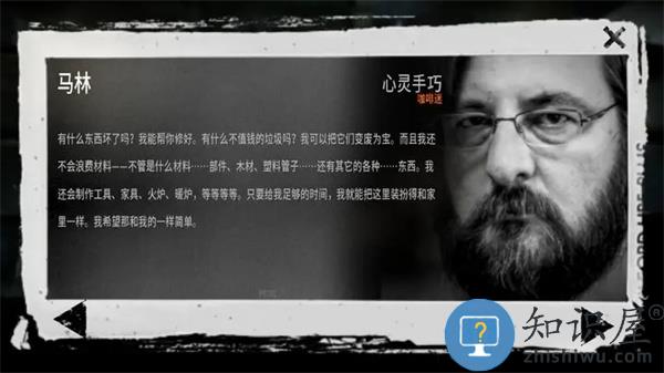住着饥饿的画家,去的时候给他带个生肉就能够他活到战争结束,然后他会带你去地下室获得两个钻石和一瓶酒精,并且全家满足。一个锁,一个栅栏,大量材料,无食物,有电子元件与零件。