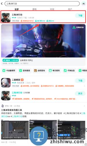 1、在顶部搜索框输入三角洲行动,点击搜索按钮。