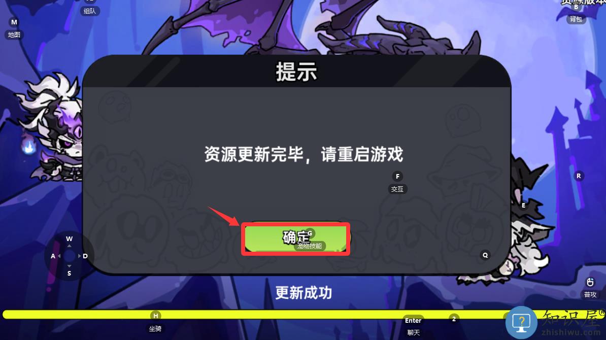 2、点击提示里的确定重新启动游戏。