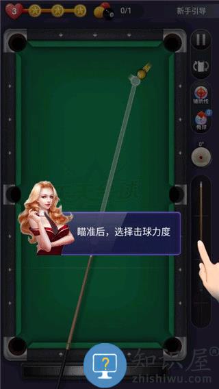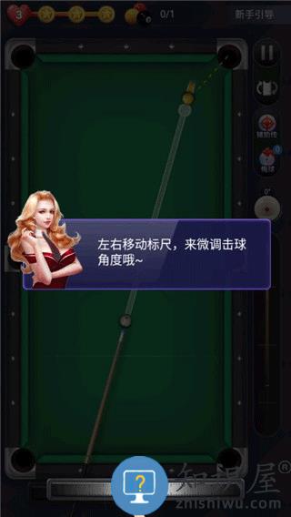 2、需要通过左右移动标尺来控制球杆微调击球的角度,点击就能够射出去击打台球了,把目标球计入栏中就可以得到分数;