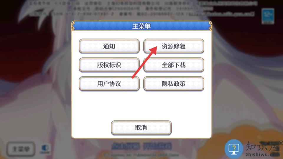 2、在主菜单中点击资源修复。