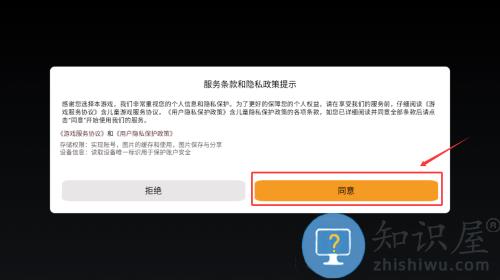 1、阅读服务条款后,点击红框标注的橙色同意按钮继续。