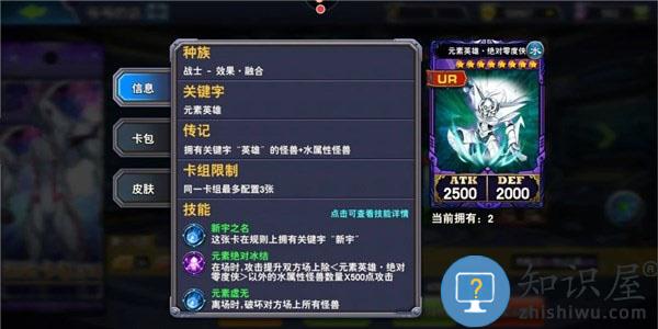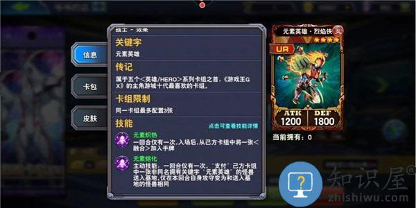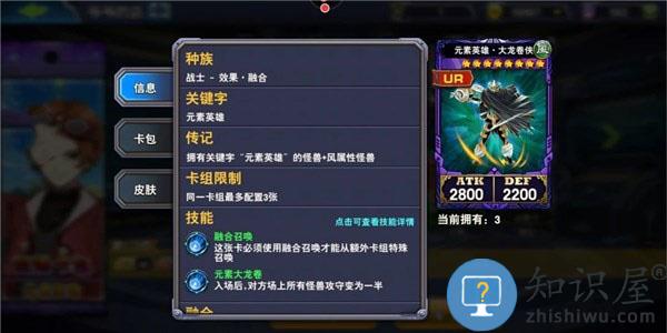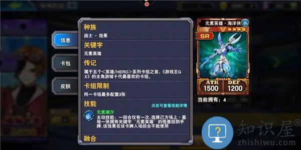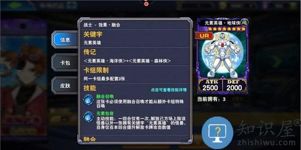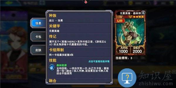 一技能:一回合一次,入场后,从卡组把一张〈融合加入手牌〉(融合是元素英雄卡组不可或缺的核心卡,有这张卡融合上手率太太提升)