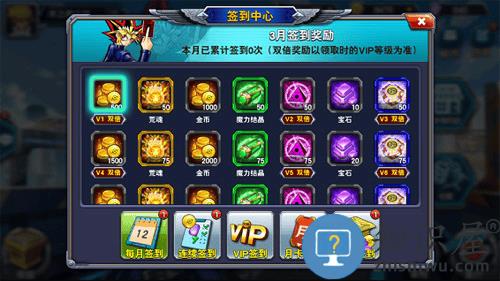 领取月签到奖励。月签到中包含各类资源,金币与宝石也能够随着签到日期的进展而获得更多。VIP等级的提升对部分签到奖励会有影响,在指定的时间,达到某个VIP等级可以领到双倍的奖励。