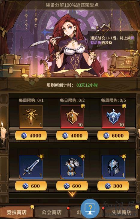 每天最好购买5次竞技场次数(只需50钻),尽早兑换高级装备、分解低级装备