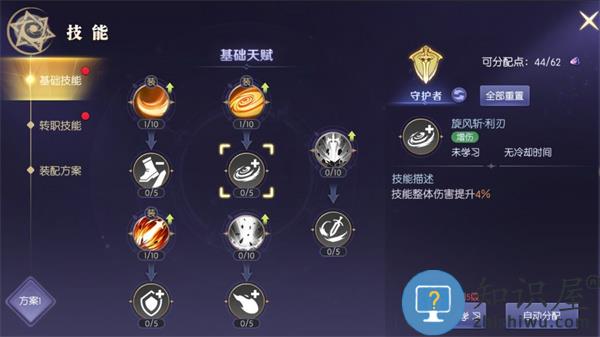 1、首先需要提升的就是职业技能,无论选择哪一职业技能的加点都是重中之重,通过提升等级可以获得点数。提升等级之后的技能效果明显提高,首先需要加点的是5个主动技能,尽量选择自己优先使用的4个进行强化,然后是它们对应的被动效果。
