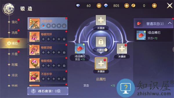 3、再就是镶嵌魂石,每一件装备都可以镶嵌5枚魂石,分别是提升攻击力的血晶石,提升破甲值的紫光石,提升生命值的翡翠石,提升防御的金刚石。在这4种属性中优先选择和升级加攻击力的石头,其次是生命值,然后才是破甲和防御。除了购买更多的魂石之外,还能够提升等级,相同等级的同名石头可以合成更高级的石头,属性大大提高。