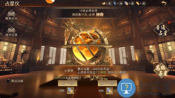 ·点击菜单进入占星仪选择高级占星,消耗占星盘可召唤武将;