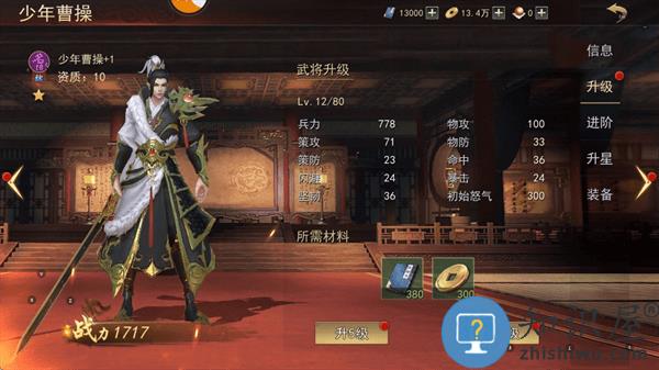 ·进入武将页面利用“武将阅历”和“铜钱”可以将武将进行升级,提升武将基础属性。