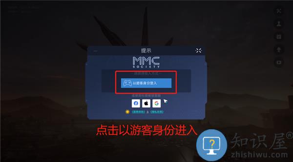 4、接下来玩家可以在右边的菜单列,点击第二个图标,选择“以游客身份登入”就可以绕过“锁区”直接进入游戏了。