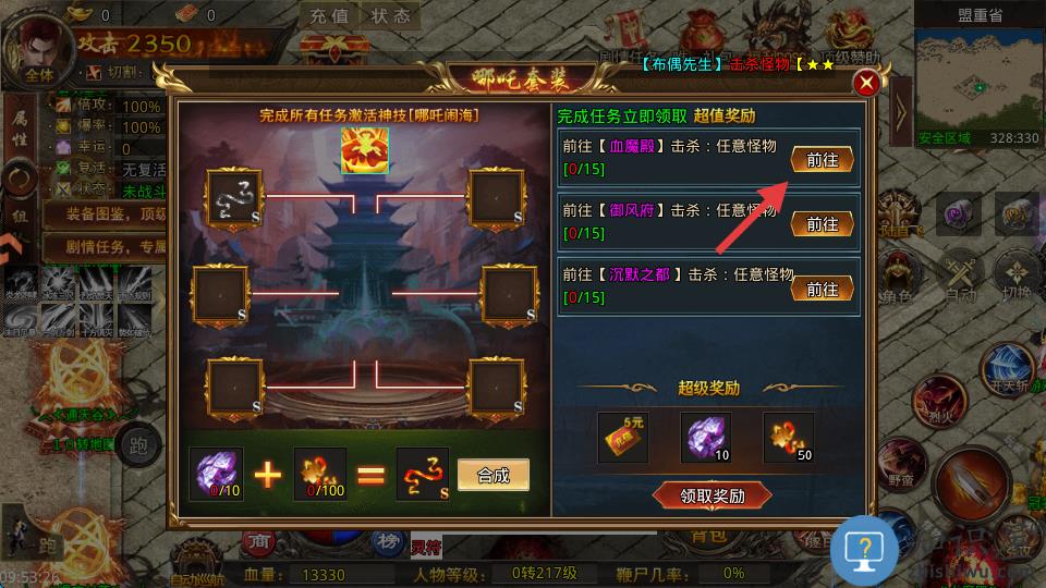 3、杀任意怪物达到条件,领取白嫖赞助,获得对应等级直升券