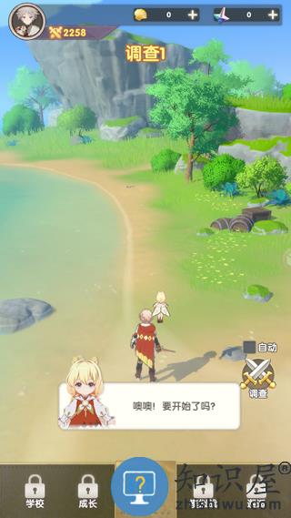 利用魔法咒语,自然能解放双手,挂机跑图,自动打怪,还有拿不完的宝箱与材料,一键轻松升级。学院内还有消除数字、射击史莱姆等趣味游戏,回归红白机的乐趣~