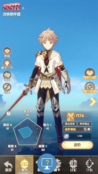 她的属性表,勇武值(即伤害值)达到了A评级,相比起其他B或C评级的属性,伤害输出即是她的突出能力。